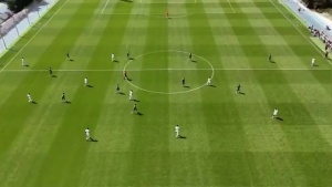 视频中可以看到,米利唐后场接球后,稍作调整直接起脚吊射对方球门进网,根据球场草皮可以大致推算,这脚吊射的射程应该在60米以外。