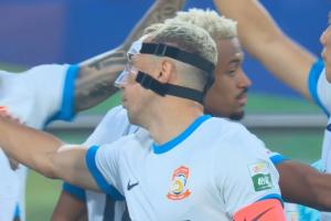 本场比赛,双方各有一名外援——津门虎萨尔瓦多、西海岸戴维森因伤佩戴着面部护具出战。