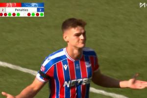 体育资讯08月11日讯 利物浦vs水晶宫点球大战第5罚,21岁德文尼第五罚直接抽死角,阿利森无可奈何!水晶宫点球大战3-2利物浦总分5-4夺社区盾!
