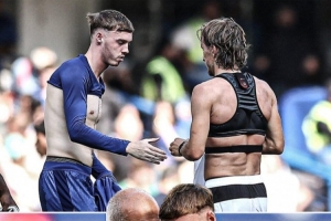 体育资讯8月11日讯 友谊赛,切尔西4比1击败AC米兰。赛后,赛场上出现温情一幕:米兰中场核心莫德里奇与切尔西新星帕尔默互换球衣。