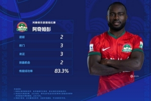在本轮河南主场迎战深圳新鹏城的比赛里,阿奇姆彭全场3脚打门全部射正、转化成2个进球,帮助球队4-1大胜对手。
