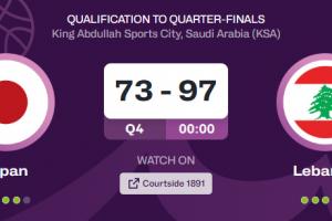 体育资讯08月13日讯 今日凌晨结束的男篮亚洲杯1/4决赛资格赛,黎巴嫩97-73大胜日本,晋级八强赛。