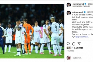热刺队长罗梅罗社媒晒出赛后失落的照片,配文:“毫无疑问,以这样的方式输球令人痛苦,但这会让我们作为一支球队变得更强大。我们会努力拼搏,一起重现争冠时刻。