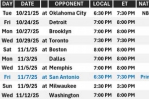 11月8日:客场打马刺