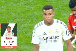全场比赛结束,姆巴佩当选皇马西甲首轮全场最佳球员。