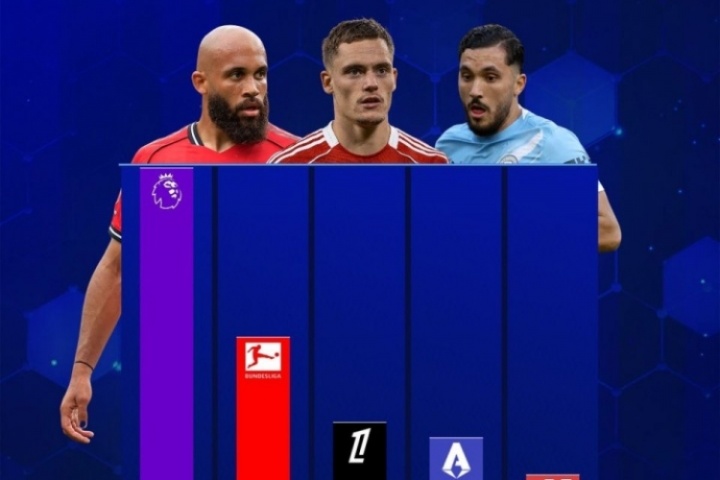 1、英超-34人(8.678亿欧)