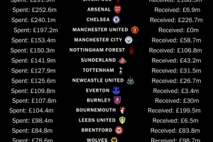体育资讯8月26日讯 The Athletic网站统计了截至目前英超各俱乐部今年夏窗的转会支出/收入情况,具体数据如下: