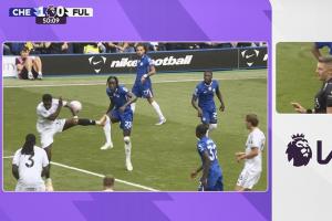 比赛第50分钟,查洛巴传中,塞塞尼翁禁区内手球,主裁场边回看中。
