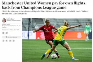 电讯报:曼联让女足自费购买欧冠客场返程机票,部分球员很愤怒