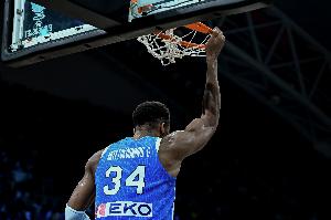 上半场,希腊球星字母哥高效发挥,打了15分钟9投6中,罚球5中3拿到15分2篮板1助攻2抢断,正负值+3。