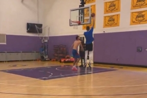 体育资讯9月16日讯 近日霍姆格伦在社媒晒出和队友哈滕在湖人训练馆进行训练的视频。