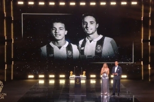 体育资讯9月23日讯 2025年金球奖颁奖典礼正在进行,典礼现场播放了一段短片,悼念7月因车祸去世的若塔兄弟。