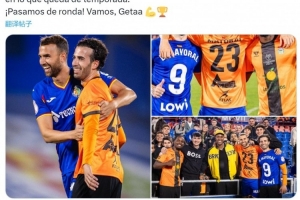 “祝巴尔德莫罗本赛季剩余比赛好运。我们晋级了!加油,赫塔费!”