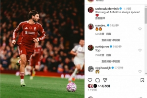 索博斯洛伊当选利物浦队内最佳球员,他在社交媒体上庆祝胜利:“在安菲尔德取胜总是很特别。”