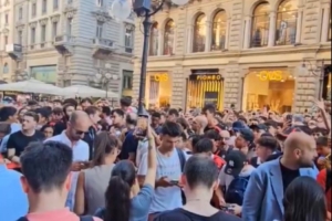 莫德里奇今天在米兰之家举行发布会,并随后到米兰市中心但丁路的旗舰店向球迷致意,红黑军团的球迷欢呼莫德里奇的名字,同时也仍在继续抗议俱乐部的美国老板。