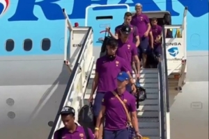 体育资讯8月5日讯 巴萨官方晒出了球队抵达巴塞罗那的视频。